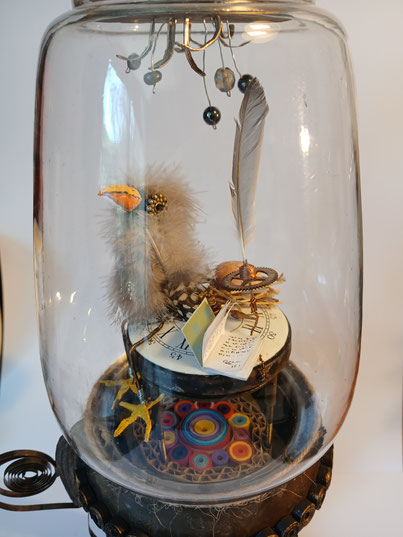 Faites de bouts de rien récupérés de-ci de-là , stockés au fond d'un placard, un jour la fusion s'est produite pour créer un bestiaire imaginaire abrité sous des dômes de verre et accompagné de leurs petites histoires.